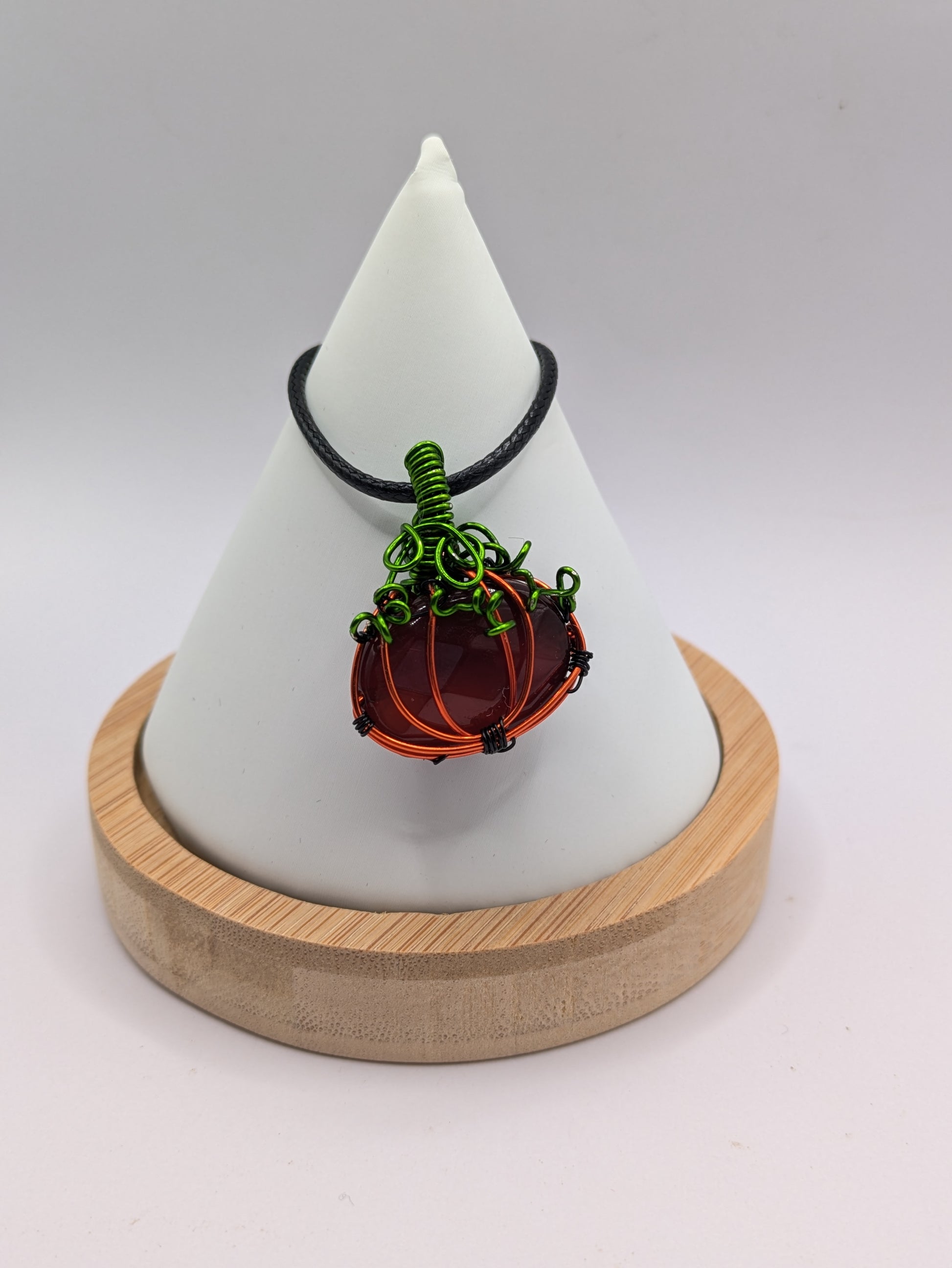 Cute, Handmade Pumpkin Halloween Necklace Featuring Carnelian