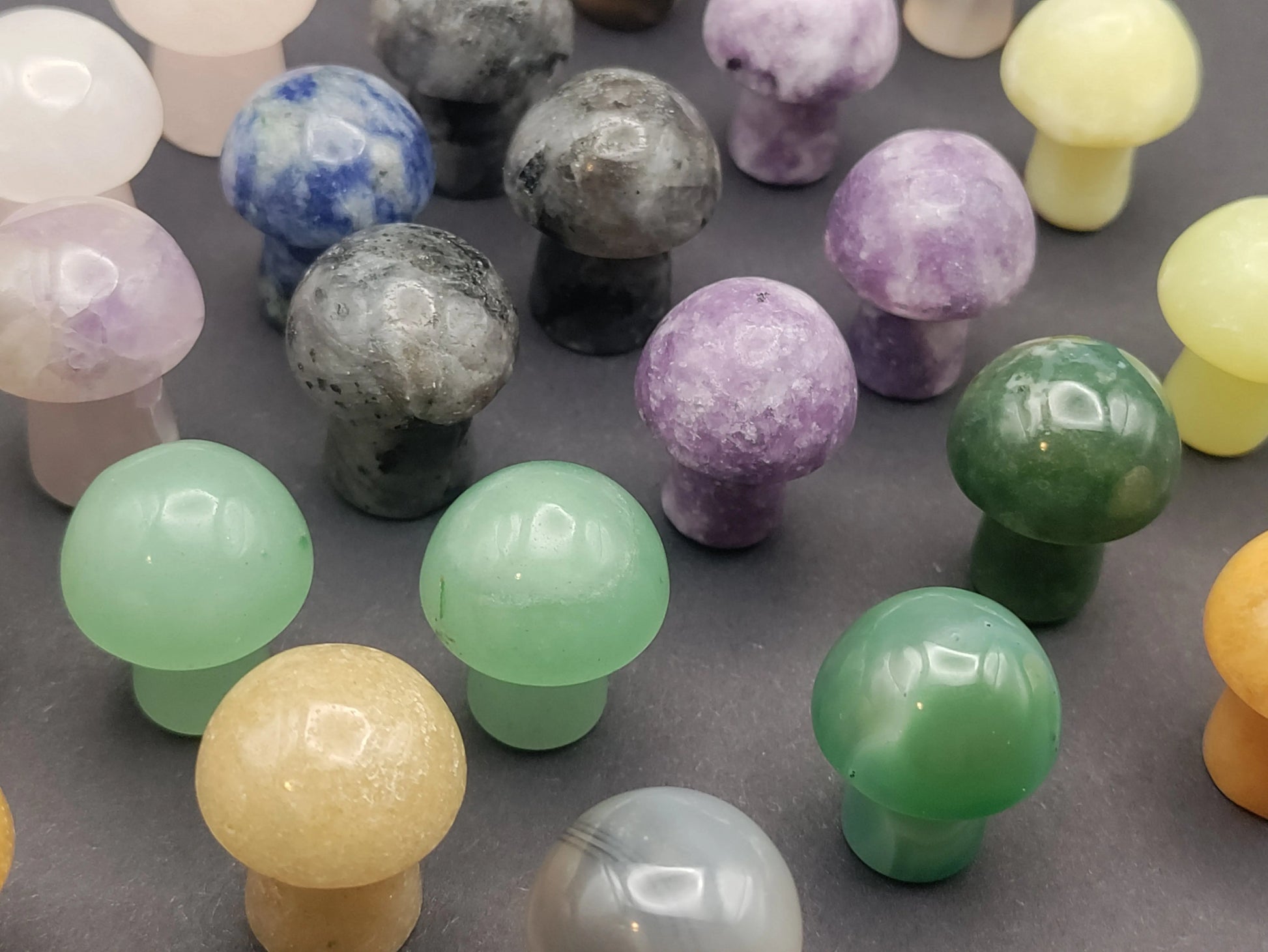 Key Words: Rose Quartz, Sodalite, Labradorite, Amethyst, Lepidolite, Green, Yellow, Orange, Grey & Clear, Mushroom, Crystal Mushroom, Rock Mushroom, Stone Mushroom, Mushrooms, Crystal, Crystals