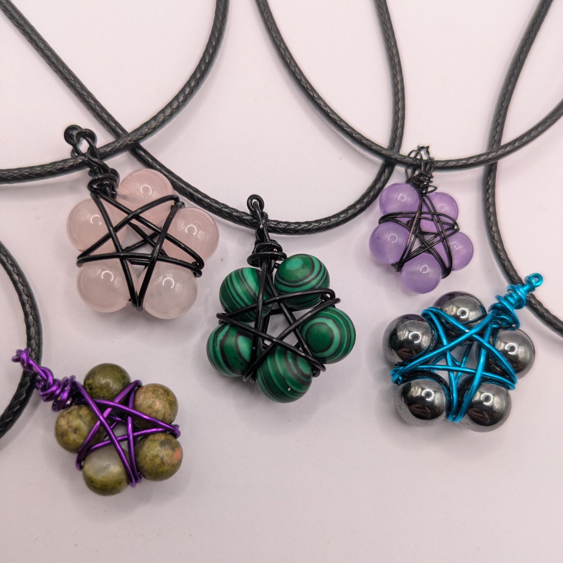 Key Words: Pentagram, Pentagram Necklace, Pentagram Pendant, Halloween, Halloween Necklace, Wiccan, Wiccan Necklace, Jewelry, Handmade Jewelry, Rose Quartz, Hematite, Rose Quartz Jewelry, Rose Quartz Necklace, Hematite Necklace, Hematite Jewelry