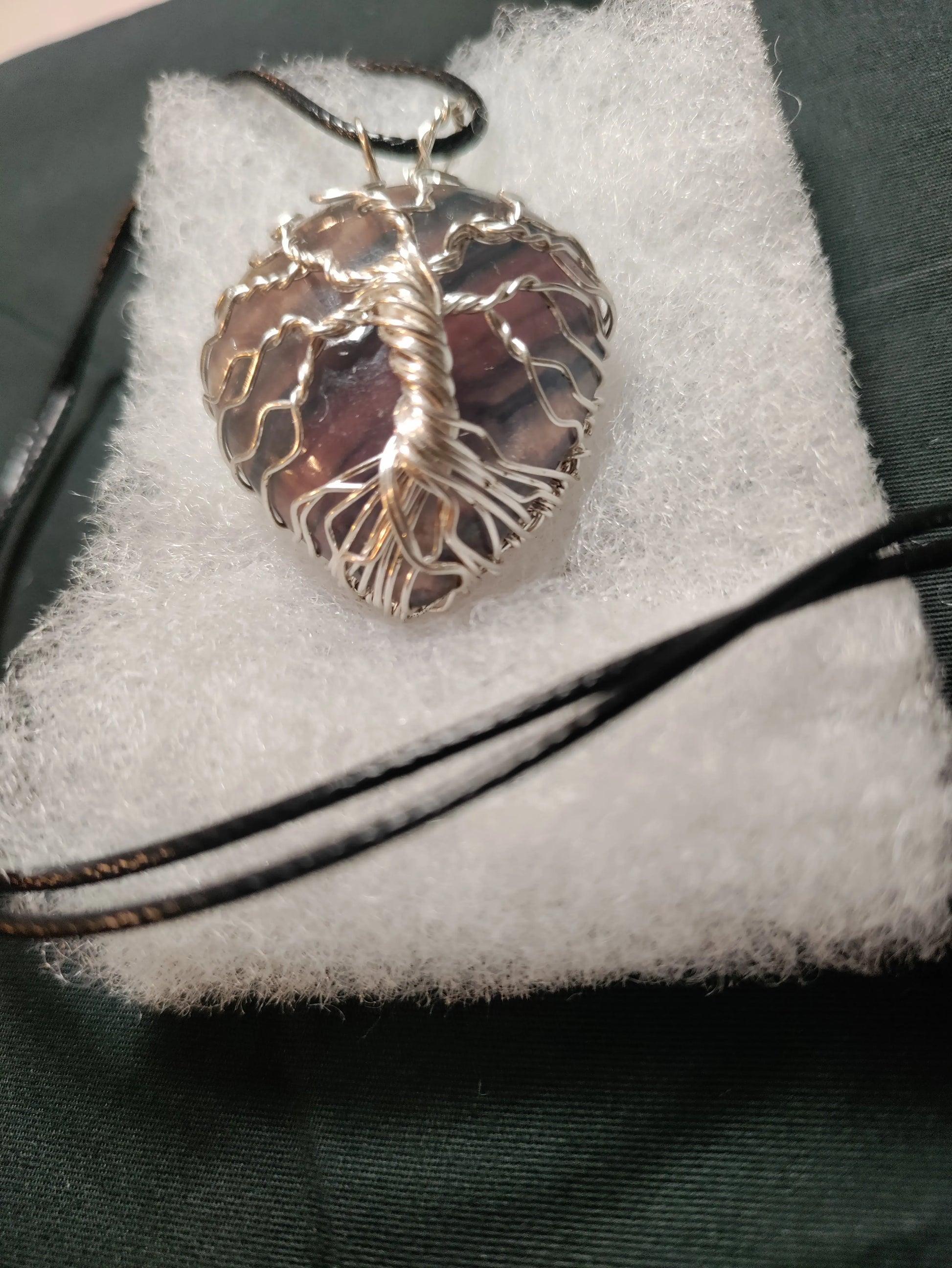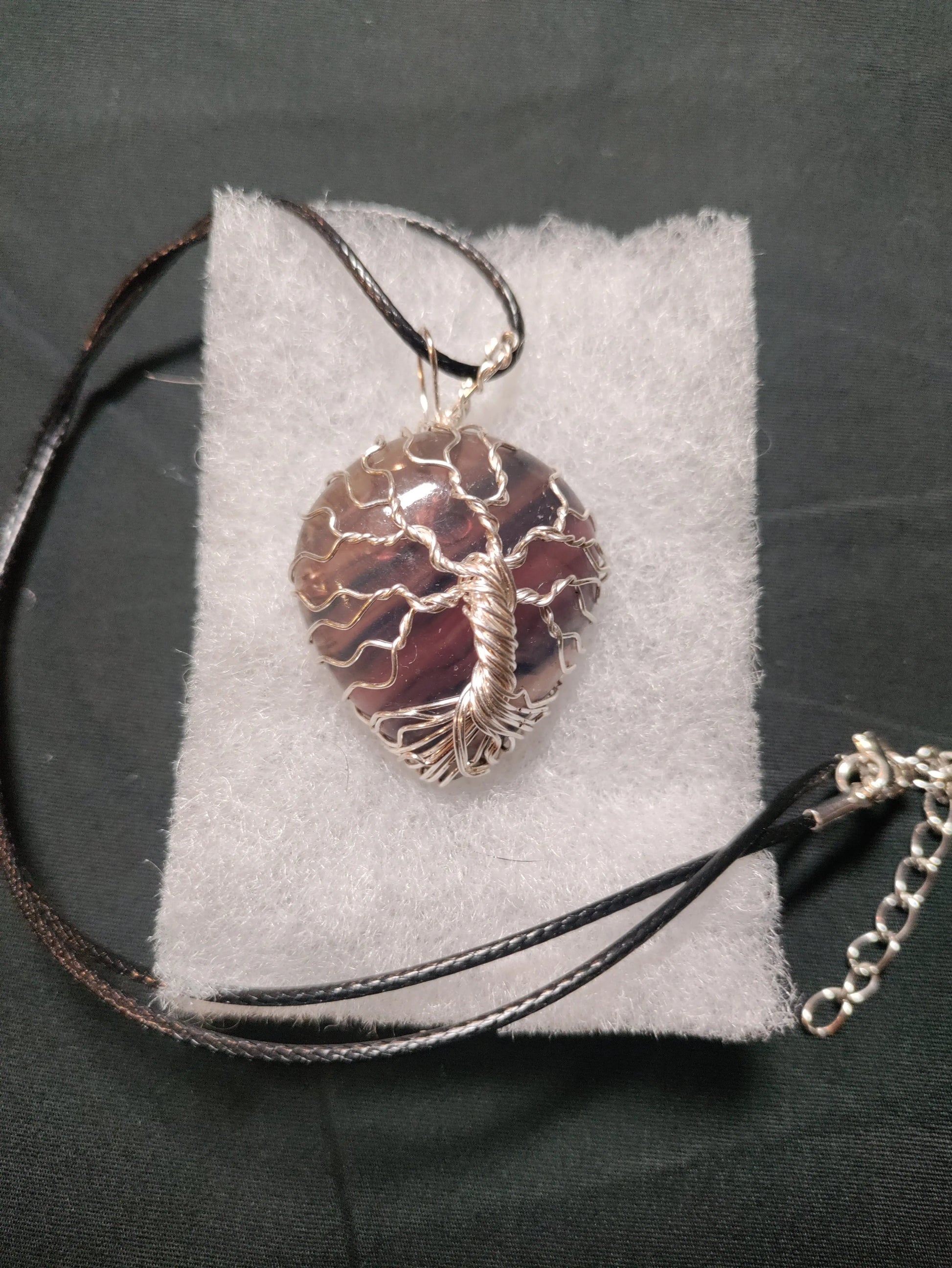 One of a kind, handmade Tree of Life Necklace. Made with a top-quality Red Moss Agate and Silver Wire by Leaf's Jewelry. It comes with a simple black necklace and a beautiful, cotton filled, golden jewelry box.